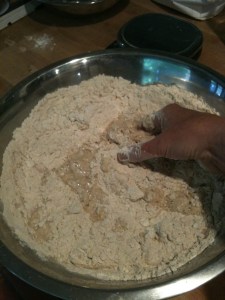 Getting chickens saved my starter. I know it sounds weird, but because I chose to start the starter in early spring and because our wood heated house never has a constant ambient temperature above 65-degrees unless the fire is blazing, my homemade starter was in a sate of stasis…no bubbles, no smell, no life. Then we got ten baby chicks. They lived in a large cardboard complex in our living room, and a big red heat lamp hovered above them non-stop. Just like the babies, my starter needed warmth to live. I realized that I could station the bowl of starter in close proximity to the lamp and soon started to see signs of life. The chicks and the native wild yeasts thrived together.